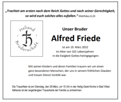 Alfred Friede ist im Alter von 101 Jahren heimgegangen -