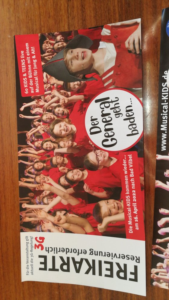 Ihr Lieben, ich melde mich nochmal wegen des Konzerts „Der General geht baden“. Ihr habt die Nachricht erhalten, dass diese Aufführung leider nicht stattfinden kann. Aber die Musical-KIDS haben sich eine tolle Alternative überlegt! Jetzt, um 16:00 Uhr (und bis zum Ostermontag) könnt Ihr das Musical unter folgendem Link anschauen, das einen LIVE-Mitschnitt der Generalprobe abzeichnet. www.youtube.com/watch So gibt es eine Möglichkeit, trotzdem dabei zu sein- wenn auch „nur“ vor dem Laptop! Schaut gerne vorbei J Liebe Grüße und alles Gute, Eure Musical-Kids