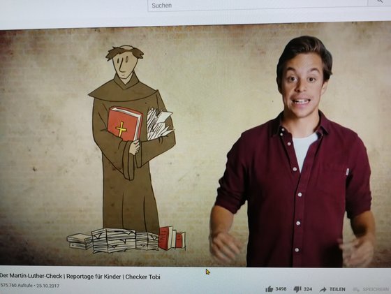 Martin Luther lebte im späten Mittelalter, also vor über 500 Jahren. >>> Der Martin-Luther-Check von Checker Tobi - für Kinder und Junggebliebene - 24 Minuten, anschaulich und informativ produziert www.youtube.com/watch Damals waren fast alle Menschen in Europa Christen, genauer gesagt, Katholiken. Die katholische Kirche hatte mehr Macht als heute: Wer sich nicht an ihre Regeln hielt, wurde sogar bedroht. Doch Martin Luther hat diese Regeln kritisiert und damit sehr viel ins Rollen gebracht: Die Menschen hörten nicht mehr auf das Oberhaupt der Katholiken, den Papst, sondern auf ihn, Luther. So entstand eine christliche Kirche, die wir evangelisch nennen. Heute leben in Deutschland rund 22 Millionen evangelische Gläubige. Ohne Luther würde es sie nicht geben. Für diese Reportage verwandelt sich Checker Tobi in Martin Luther, besucht dessen einstiges Versteck und nimmt an einem mittelalterlichen Festgelage teil. Tobi will so viel wie möglich über den großen Reformator herausfinden. . .