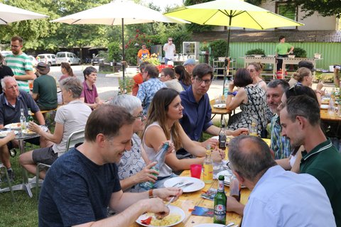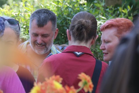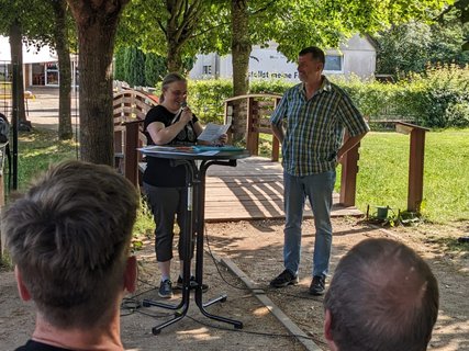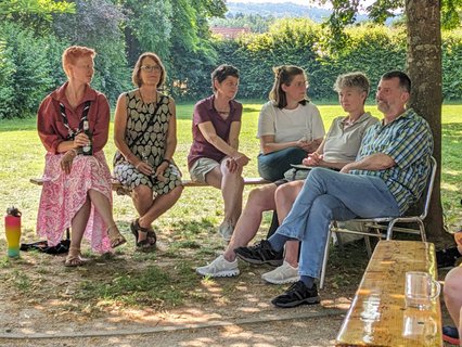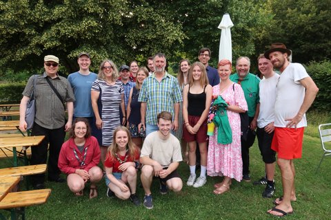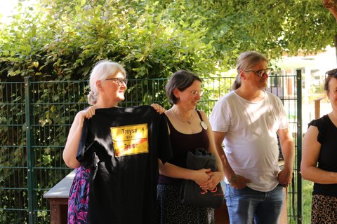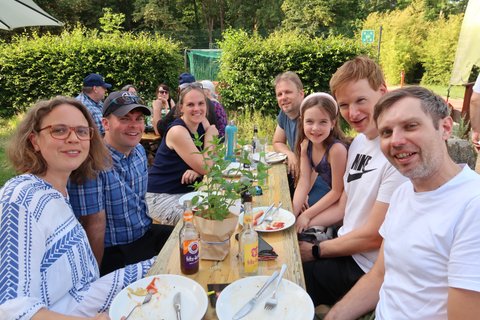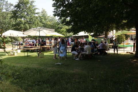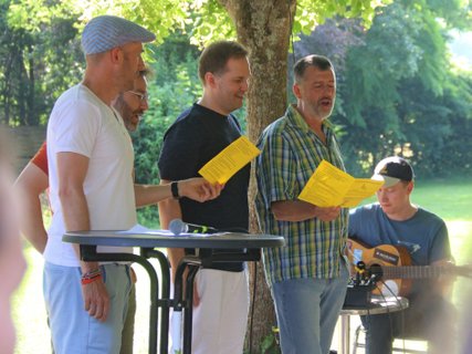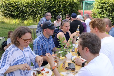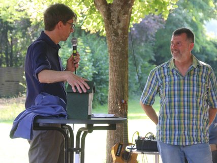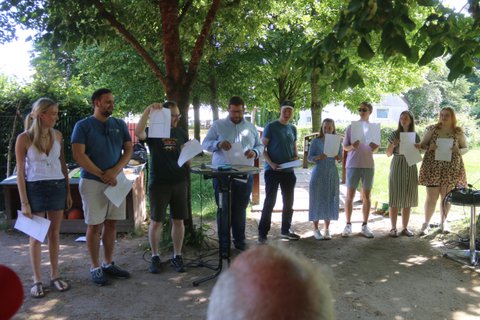 Im Anschluss ging es nach Haus Heliand, dem Freizeitheim des EJWs, mit einer Feierstunde im Schatten der Linden und einem schönen Grillfest weiter. Hier wurde gesungen, Geschenke wurden überreicht, Geheimnisse über Frank wurden gelüftet und wir alle haben gespürt: Frank hinterlässt große Spuren im EJW.