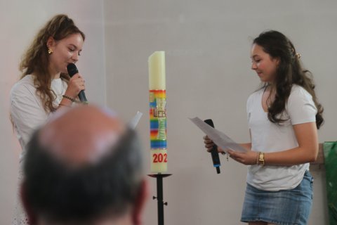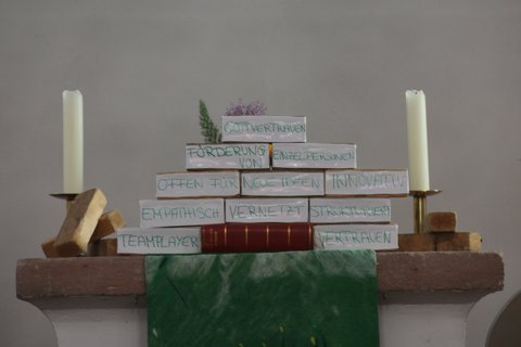 Beim Verabschiedungsgottesdienst in der Ev. Kirche in Oberstedten haben sich viele Menschen zusammengefunden, die Frank im EJW begleitet haben. Aber auch Freund*innen und seine Familie sind gekommen. Durch das Anspiel wurde bald klar: Es geht um das Bauen - und dann hoffentlich nicht auf Sand. In der Predigt wurde von Annika und Milena hervorgehoben, was für ein guter Hausbauer Frank war. Sie lasen das Gleichnis vom Hausbau und meinten dann: „Lieber Frank – ich kann dich beruhigen – sofort waren wir uns alle einig, dass du als LdM EINDEUTIG der erste Baumeister warst, der Kluge, der sein Haus – also seine Arbeit – auf Fels gebaut hat, auf sicherem Grund. Auf das Fundament kommt es an. Lieber Frank, das Fundament deiner Arbeit war dein Glaube. Dein Glaube an Gott und Gottes Wort, an die einfache und doch so schwierige Botschaft „Liebe deinen Nächsten wie dich selbst“ und an die christliche Gemeinschaft, in der Glaube geteilt und gelebt werden kann. Dir war es immer wichtig, den Glauben „einfach“ zu halten, aber stets ehrlich und aufrichtig. Dein Gottvertrauen wurde zum Fundament deines Hauses, deiner Arbeit, und trug dich in den letzten Jahren auch durch schwere Zeiten.