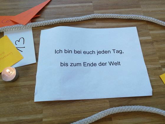 Am Freitagabend trafen sich die Konfis zum letzten Mal zu einem Blockabend (5 Stunden) vor Ihrem Vorstellungs-Gottesdienst und ihrer Konfirmation. Es ging für die Konfis darum, auf ihre letzten Lebensjahre (1 – 14 Jahre) zurückzuschauen und sich an gute und schwere Erlebnisse zu erinnern (siehe Foto 2). In unserer Kleingruppe schenkte Gott eine besondere Offenheit und es wurden gute und schwere Lebenssituationen genannt. Ganz persönlich und sehr offen … In einem zweiten Teil wurde überlegt, in welchen Lebenssituationen sie Gott wahrgenommen hatten. In Sinne von … „Ich bin bei euch jeden Tag bis zum Ende der Welt.“ (Foto 3) Im letzten Teil des Abend ging es darum, sich einen persönlichen Konfirmationsspruch auszusuchen. Wir hatten gutes Material für die jungen Menschen, das ihnen geholfen hat, sich selbst als besondere und einzigartige Person wahrzunehmen und einen passenden Bibelvers für ihren Lebensweg auszusuchen. Das tat jede*r für sich allein. Und da gab es für uns Teamer*innen gute Gesprächsmöglichkeiten, um die jungen Menschen zu ermutigen. Folgende Konfi-Sprüche wurden u. a. ausgesucht: - Der Herr hat seinen Engeln befohlen, dass sie dich behüten auf all deinen Wegen. - Ich bin mit dir und will dich behüten, wo du auch hinziehst. - Fürchte dich nicht, denn ich bin mit dir und will dich segnen. In Team dabei: Pfarrerin Katja Föhrenbach, Isabelle, Leonie, Bjarne, Felix und Hans-Conrad Blendermann (EJW)