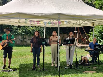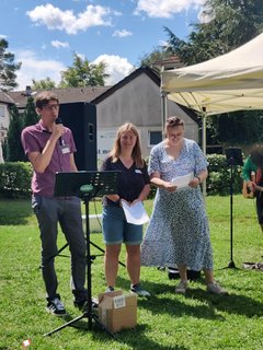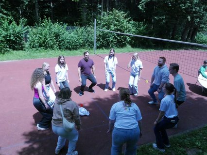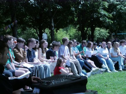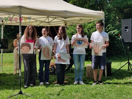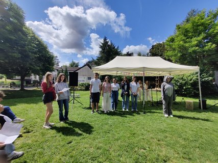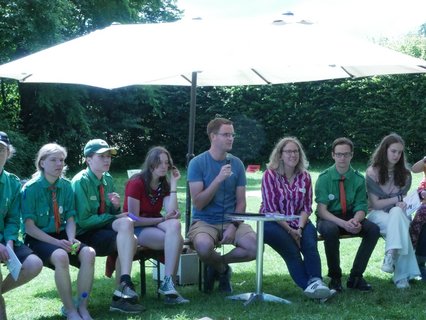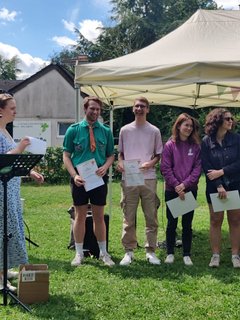 Das Fest begann mit einem lebendigen Gottesdienst, bei dem es um den Korintherbrief „Ein Leib, viele Glieder“ und um die Geschichte, mit den blinden Weisen und dem Elefanten ging. Jeder Mensch in unserer Gemeinschaft, in unserer Gesellschaft ist wichtig und wertvoll und hat seinen*ihren Platz und viele Puzzleteilchen ergeben erst ein richtiges Bild. 47 Jugendliche haben ihre Juleica-Urkunde im Gottesdienst überreicht bekommen und 17 junge Erwachsene sind zum*zur Teamleiter*in berufen worden. „Das macht Hoffnung für die Zukunft“, sagte ein Ehemaliger und war ganz begeistert. Ungefähr 200 Menschen sind unserer Einladung gefolgt, Ehemalige, Eltern, Pfarrer*innen, Spender*innen und natürlich unsere Ehrenamtlichen. Wer sich nach dem schönen Gottesdienst mit Gemüseburger oder Würstchen im Brötchen gestärkt hatte, konnte selbst Riesenseifenblasen herstellen, sich im „Schnick-Schnack-Schnuck“ Rennen oder beim Speersport auspowern, verschiedene Spielstationen durchlaufen oder sich als Löwe schminken lassen. Es gab viele Begegnungsmöglichkeiten, die auch bei Kaffee, Stückchen und Kuchen gut genutzt worden sind.