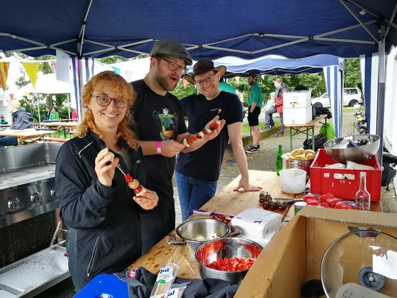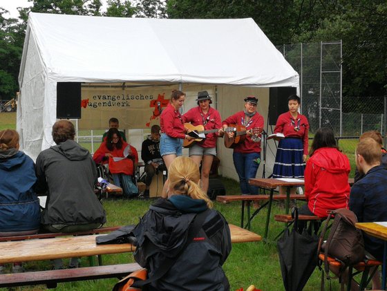 Das Wetter war bescheiden, aber wir hatten Sonne im Herzen. Es gab einen abwechslungsreiche Gottesfeier, der von vielen Kleingruppen (EJW Fachgruppen und Ortswerken) gestaltet wurde. Melanie Kleinschmidt und Emil Oberwinder aus der Mitarbeitendengruppe Nieder-Erlenbach/ Harheim moderierten durch die Gottesfeier. Pfarrer Andreas Hannemann aus der Erlöserkirche in Bad Homburg hielt eine lebendige und anschauliche Kurz - Predigt. Die neuen Team-Leiter*innen wurden ernannt und für Ihre verantwortlichen Aufgaben im EJW gesegnet. Für alle Freizeit- und Pfadfinder-Zeltlager Teamer*innen und ihre Sommer-Freizeiten wurde auch gebetet, dass sie erlebnisreiche und schöne gemeinsame Zeiten erleben. Wir sind dankbar für die vielen engagierten jungen Menschen, die ganz neu und immer wieder bereit sind, (mehr) Verantwortung in ihrem Aufgabenbereich, auf Freizeiten und Pfadfinder*innen-Zeltlagern zu übernehmen. Veranstaltungsleitung Malvina Schunk (Malle) hatte das Sommerfest super vorbereitet und viele junge Mitarbeitende (z. B. aus Nieder-Erlenbach + Harheim, der Mitarbeitendengruppe Frankfurt Mitte, Heliand Pfadfinder und Pfadfinderinnen) und ältere Leute (Männerballett der kath. Kirche St. Bonifatius - "Boni Bjutie Beus") gewonnen, die zum Gelingen des Festes beigetragen haben. Vielen Dank, Malle… Kirmes lautete das Motto des diesjährigen Sommerfestes und neben Crepes, einem Grillstand, Kuchen, Slush Ice, durfte natürlich auch nicht die Musik fehlen. Eine kleine Delegation der Band aus dem Ortswerk Bad Vilbel sorgte am Nachmittag für gute Stimmung und neben Speis und Trank gab es allerlei Spiele für die Kleinen wie Entchen angeln und Dosen werfen, aber auch Wikinger Schach, Tower Power etc. für die Großen. Und der Besuch von über 160 Personen zeigt, wie wichtig es den Menschen ist, sich wieder zu begegnen, um Gemeinschaft, Glaube und Begeisterung gemeinsam zu erleben. Das EJW – Team PS: Schade war nur, dass das Männerballett nicht getanzt hat…