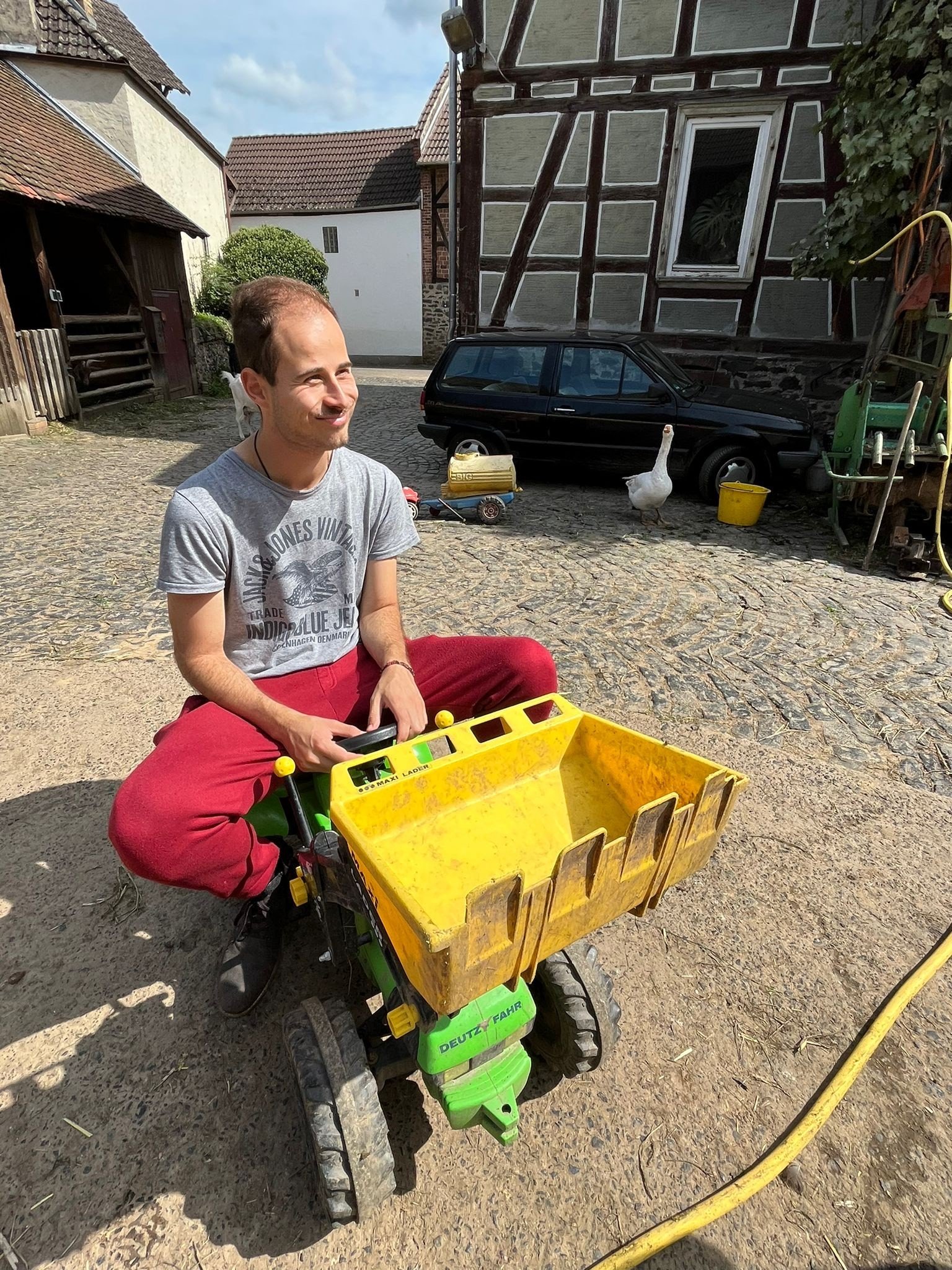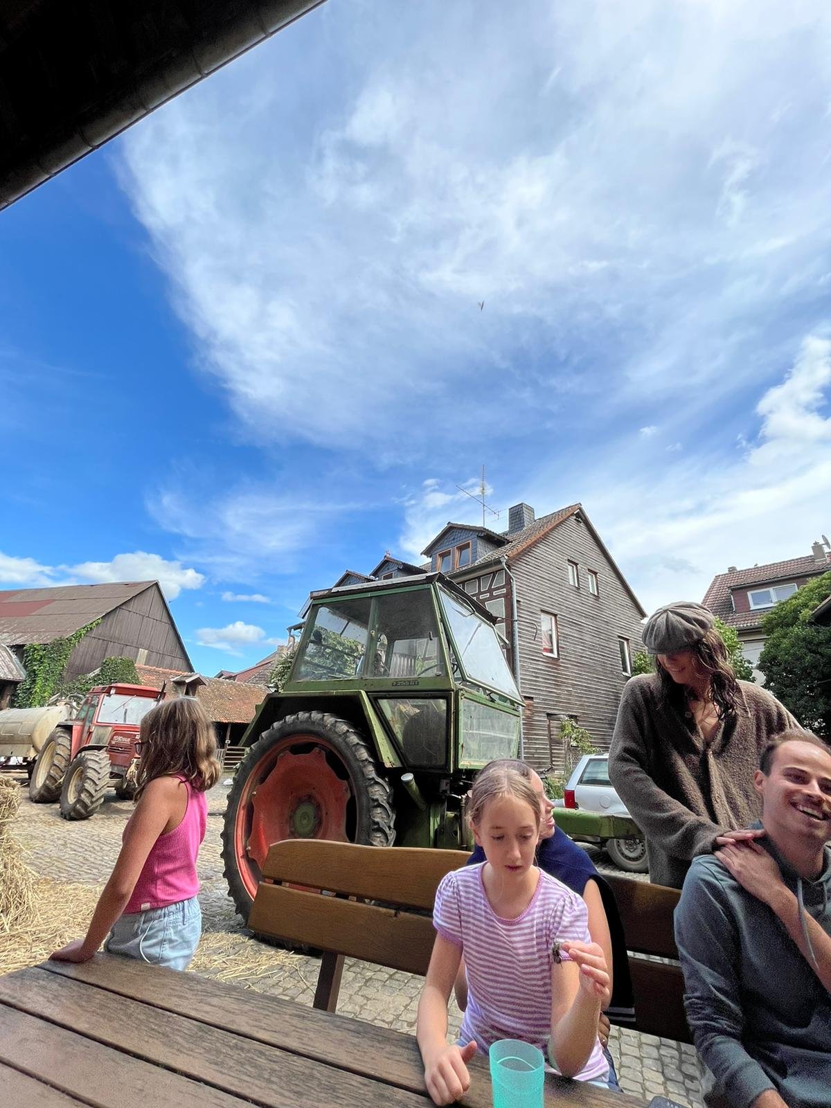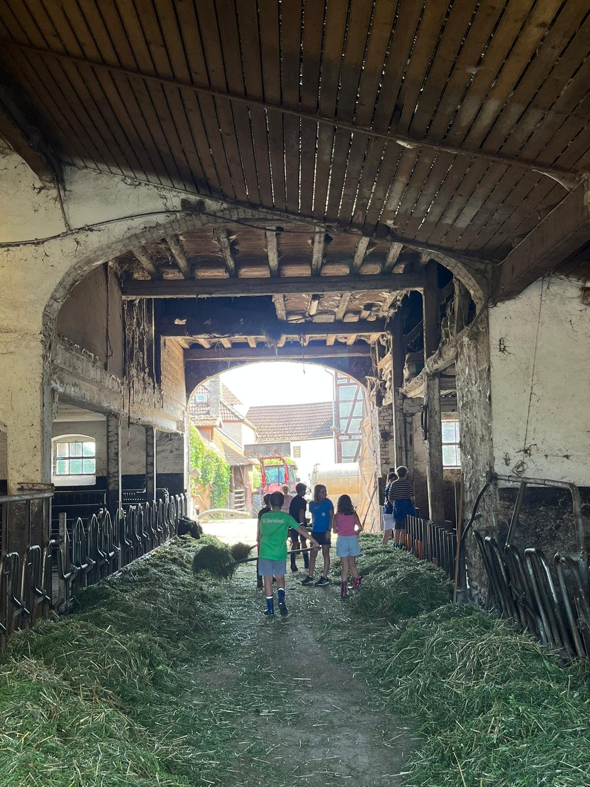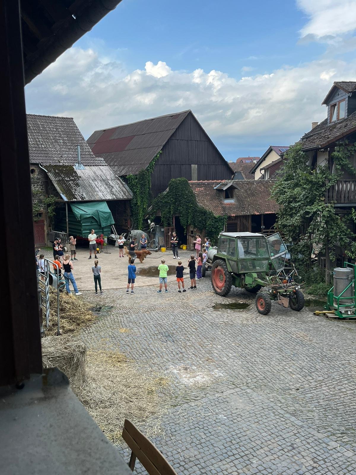 Mittlerweile haben alle Kühe des Hofs einen Spitznamen zugeordnet bekommen. Kuhzeichnenwettbewerb, Quizabend, Freundschaftsbändchen knüpfen und Traktor fahren prägten unsere Tage. Hinzu kommen freilich die nimmer endenden aber erfüllenden Hoftätigkeiten, die das Bauernleben so mit sich bringt und die Kids bereits zur Mittagspause erschöpft sein lassen, weswegen das „Nickerchen auf dem Heuhaufen“ immer beliebter wird. Zudem haben wir eine Nachtwanderung unternommen - dort stellten viele der Kids fest, wie cool es sein kann durch Wald und Wiesen zu laufen und dabei Gelegenheit für tiefgründige Gespräche und zum Lieder trällern zu haben. Die anschließende Andacht bei Kerzenschein im Garten bot Kindern und Team die Möglichkeit, den Tag in entspannter Atmosphäre ausklingen zu lassen.