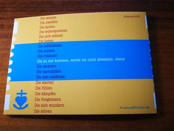 Diese Karte habe ich zu meinem Geburtstag erhalten. Aber es ist auch eine Freikarte für Dich ... "Die zu mir kommen, werde ich nicht abweisen." Jesus Das gilt für uns alle ..., auch für Dich. Hans-Conrad Blendermann