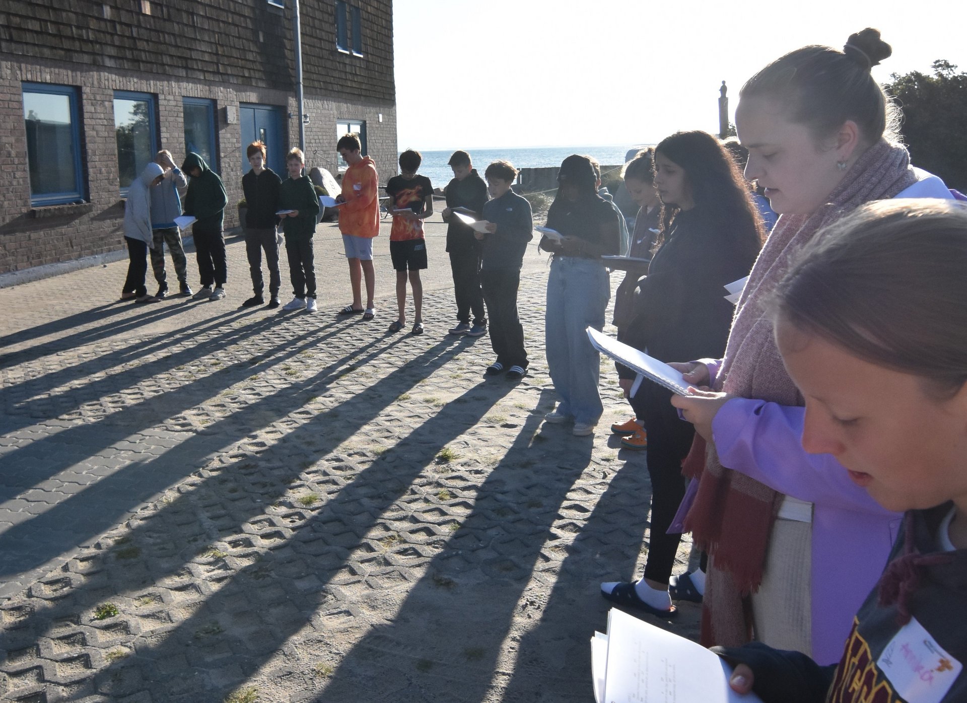 Direkt am Strand und mit Meeresrauschen genießen wir unsere Freizeit. Die vorletzte Segel- und Surfeinheit liegt hinter uns und jeden Tag werden wir besser. Die restliche Zeit wird genutzt für Zeit am Strand, Kreatives, Stadterkundungen und spannendes Abendprogramm. Dank des leckeren Essens von unserem Küchenduo sind wir für alles gestärkt.
