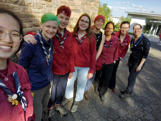 Durch meinen studienbedingten Umzug nach Baden-Württemberg habe ich in den letzten Jahren wenig Zeit gefunden, mich in der HMP zu engagieren oder mit auf Veranstaltungen zu fahren. Doch jetzt die Gelegenheit: ein Wochenende für alle über 18, keine Aufgaben übernehmen, einfach mitfahren und genießen. Ich bin seit 13 Jahren Teil der Heliand Pfadfinderinnenschaft, war schon oft mit dem Rucksack unterwegs und doch war ich sehr dankbar für die Packliste. Denn nach zwei Jahren Pandemie mal wieder für eine Fahrt zu packen war doch herausfordernder als anfänglich gedacht. Rucksack? – habe ich; warme Kleidung? – habe ich; Schlafsack und Isomatte? – da haben wir schon die erste Hürde, denn nach einem kritischen Rundumblick durch mein WG-Zimmer muss ich feststellen, dass ein Großteil meines Pfadfinderinnen-„Equipment“ gar nicht mit mir aus dem elterlichen Haus ausgezogen ist. Also muss ich wohl vor der Fahrt nochmal dort vorbeischauen, kein Problem. Als ich mich am Freitagmorgen mit fertig gepacktem Wanderrucksack vom Elternhaus auf den Weg zum Frankfurter Hauptbahnhof machte stelle ich fest, dass es auch seine Vorteile hat, ab einem gewissen Zeitpunkt nicht mehr zu wachsen, denn glücklicherweise passen die Wanderschuhe noch!