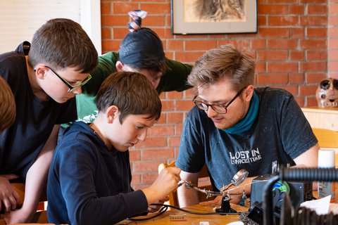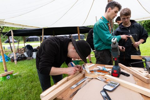 Über das Pfingstwochenende versammelten wir uns mit knapp 100 Heliand-Pfadfindern auf dem Zeltplatz UHU bei Langenhain Ziegenberg, um gemeinsam das diesjährige Pfingstzeltlager zu verbringen. Sport und Wettkampf standen dieses Jahr nicht im Vordergrund, sondern das Thema ,,Handwerk“. Um diesem Motto gerecht zu werden, gab es eine Bandbreite an verschiedenen Workshop-Angeboten, bei denen man sich je nach Interessensgebiet einwählen konnte. Während es das Wochenende sehr häufig regnete, wurde am Samstag bei Sonnenschein geschweißt, Alarmanlagen und Öllämpchen gelötet, Handsägen gebaut, Lederbeutel mit Spielfeldern + Figuren hergestellt, gekocht, das Thema Jagd kennengelernt, Speere gebaut, abstrakte Zeltkonstruktionen ausprobiert und Experimente mit erneuerbaren Energien gemacht. Diese Angebote wurden in den verschiedenen Themenbereichen von erfahrenen Heliand-Pfadfindern vorbereitet und durchgeführt, sodass man nicht nur Werkstücke anfertigte, sondern treu unserer Pfadfinderregel ,,Ich will nie aufhören zu lernen“ seinen Wissenshorizont erweitern konnte.