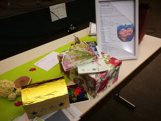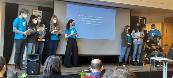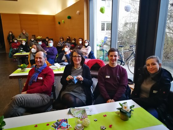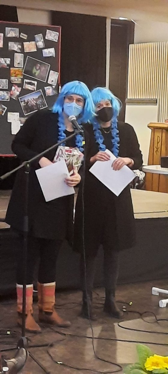 Am Sonntag, 13. Februar, wurde die Hauptamtliche aus dem Frankfurter Osten verabschiedet. Nach fast 30 Jahren im EJW und 15 Jahren im Frankfurter Osten wird Regina Flömer ihre Tätigkeit als Beraterin intensivieren. Viele Leute, die mit Regina die letzten Jahre unterwegs waren, waren gekommen, um sie zu ehren und zu verabschieden: - die EJW Mitarbeiter-Gruppe des Frankfurter Ostens / Frost - die Kollegen und Kolleginnen aus dem EJW Frankfurt und EJW Hessen - die Bornheimer Gemeinde - und auch der Geschäftsführer des Evangelischen Jugendwerks Ihre Mitarbeitenden - Gruppe hatte sehr schöne Texte gesungen ... - hier zwei Beispiele: Man sagt, sie heißt Regina und die letzten fünfzehn Jahr, war sie bei vielen Frost-Events, was immer lustig war. Ob legendäre Herbsttreffen, ob Kanu auf der Lahn, alle Jahre wieder Schrottwichteln oder Rheingau mit der Bahn. Man sagt, sie heißt Regina an Ideen fehlt es ihr nie, ob Jungschar oder Gottesdienst, sie hat ‘ne Strategie. Besonders deine Andachten und Gespräche werden fehln’, drum hoffen wir trotz allem, dass wir uns bald wiedersehn’. -- Du bist Du Vergiss es nie: Dass du im Frost warst, war eine gute Idee, und dass du so lange dageblieben bist. Vergiss es nie: Dass du im Frost warst, war die beste Idee. Die fünfzehn Jahre, dein Geschenk an uns. Du bist gelassen, begeisterungsfähig und auch kreativ, ganz egal, was du dir vornimmst, es ist alles positiv, du bist hingebungsvoll, gläubig und sensibel noch dazu! Du bist du. Das ist der Clou, ja der Clou. Ja, du bist du. -- Regina Flömer war gerührt und dankbar und machte uns allen Mut mit den Worten: "DU bist ein Segen" Das EJW - Team