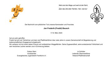 Das EJW trauert um Jan Frederik (Freddi) Bausch