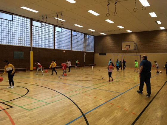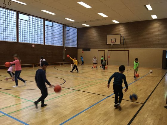 Einmal läuft eine Gruppenstunde nicht so gut und dann .... So war es gestern in der AG Sport, Spiel, Spannung. In der ersten Gruppe der 1. und 2. Klassen waren diesmal nicht so viele da und nicht alle hatten Lust Basketball zu spielen ... Dann kam die zweite Gruppe dran. Und so viele Kinder hatten wir noch nie in dieser AG Gruppe. Einige Kinder hatten ihre Freunde mitgebracht und so waren wir plötzlich 19 Kinder. Und die hatten eine Menge Spaß am Basketballspielen. Erkenntnis: Wir müssen immer das Angebot aussuchen, dass zum Alter der Kinder passt. Basketball mit richtigen Basketbälle war für einige kleine Kinder zu schwer, aber für die 3. + 4. Klässler genau richtig. Für die kleinere Kids nehmen wir dann wieder einfache Plastikbälle, dass hat in der Vergangenheit gut geklappt. Nele F. aus Nieder-Eschbach und Hans-Conrad Blendermann