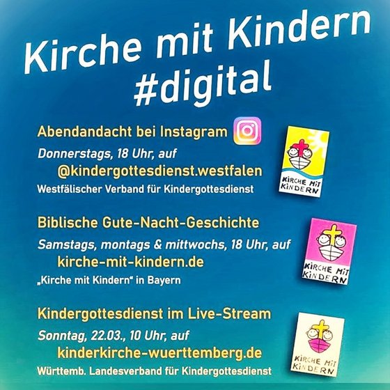 #Digitale Kirche für Kinder ... Abendandachten, biblische Gute-Nacht-Geschichten und Kinder-Gottesdienst im Live-Stream. Das haben wir alles für Euch in unserem Fernrohr entdeckt ... Hast Du auch gute Ideen für Kinder ? Dann schreibe mir doch eine E-Mail: blendermann@ejw.de Vielen Dank, die Kinder wird es freuen ... Euer Hans-Conrad