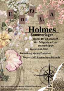 Fünf Tage wollen wir in der Natur verbringen und mit Enola Holmes Rätsel lösen. Wir werden gemeinsam Singen, kreativ werden und Spiel Sport und Spaß haben.