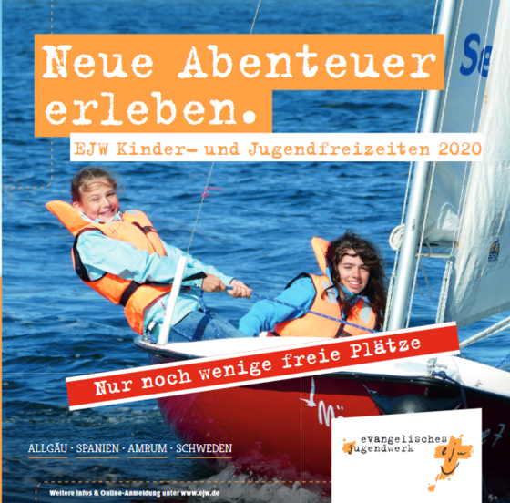 Allgäu, Spanien, Amrum und Schweden ..., tolle Angebote für ein Abenteuer in den Sommer-Ferien, mit einer super Gemeinschaft und einem tollen Team aus erfahrenen Mitarbeitern und Mitarbeiterinnen. Für diese Freizeiten kannst Du Dich noch anmelden. Es gibt auch noch Plätze auf dem Vater-Teen-Wochenende ... - www.ejw.de/freizeiten/detailansicht/freizeit/vaeter-und-teens-ab-13-jahren/ Das EJW - Freizeiten - Team PS: Der direkte Weg, äh Link zu den Freizeiten ... www.ejw.de/freizeiten/detailansicht/freizeit/allgaeu/ www.ejw.de/freizeiten/detailansicht/freizeit/spanien-1/ www.ejw.de/freizeiten/detailansicht/freizeit/insel-amrum/ www.ejw.de/freizeiten/detailansicht/freizeit/schweden/