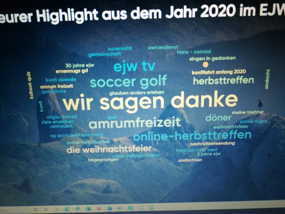 Mit Mentimeter, Kahoot! und Breakout-Rooms ... Schon relativ früh haben wir uns entschieden, unser alljährliche EJW Weihnachtsfeier online zu gestalten. Es gab weihnachtliche Impulse, zwischendurch Musik zum Anhören oder beim ausgeschalteten Mikro zum Mitsingen, eine Methoden Vielfalt, Dank der jungen engagierten Mitarbeiterinnen, eine Andacht einer Mitarbeiterin, die aus Berufs- und Studiengründen länger nicht mehr dabei sein konnte, aber sich jetzt wieder für das Online Weihnachts-Projekt gewinnen ließ. Alle Teilnehmenden der Weihnachtsfeier haben eine Weihnachtstüte per Boten oder per Post bekommen mit weihnachtlichem Tee, Süßigkeiten, einem kleinen Geschenk und einem Teil der Geschichte, die wir uns gegenseitig in 16 Abschnitten vorgelesen haben: "Mister Larrybee und sein Leuchtturm" - eine meiner Lieblingsgeschichte, die sehr gut in die Coronazeit passt: Ein vielbeschäftiger Geschäftsmann sucht über Weihnachten die Abgeschiedenheit in einem Leuchtturm. Er wird dort überraschender Weise von drei Männer besucht, die eigentlich den alten Leuchtturmwärter besuchen wollten. Mister Larrybee ist zunächst überrascht, dann aber doch dankbar über den Besuch in seinem einsamen Leuchtturm. Wir sehnen uns alle sehr nach realer Begegnung, Gemeinschaft oder einer herzlichen Umarmung. Bis das hoffentlich wieder möglich ist, rufen wir vielleicht mal eine alte Bekannte an oder schreiben einem Freund einen handschriftlichen Brief. Die Geschichte von der Geburt Jesu macht den Männern und vielleicht auch uns Mut, das Leben mit seinen momentanen Herausforderungen und mit der Hilfe Gottes zu bewältigen. Gottes reichen Segen für Euch alle und Frohe Weihnachten Hans-Conrad Blendermann PS: Vielen Dank für das Vorbereiten: Isabelle, Michelle und Svenja und vielen Dank für 16 Teilnehmende bei der Online Weihnachtsfeier, die viel Spaß gemacht hat.