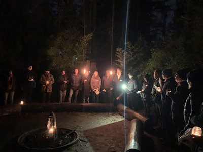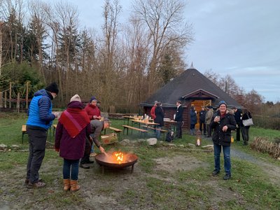 Nach dem Stationenlauf im Fackelschein blieb noch Zeit, am Lagerfeuer bei heißen Getränken ins Gespräch zu kommen und sich vier besondere Knöpfe auszusuchen. Diese Knöpfe sollen in der Hosentasche mitgetragen werden. Bei jedem schönen Erlebnis in der Adventszeit wandert ein Knopf von einer Seite der Tasche zur anderen. So möchten wir dazu anregen, die Adventszeit bewusster wahrzunehmen und die schönen, fröhlichen Momente lebendig in Erinnerung zu behalten.
