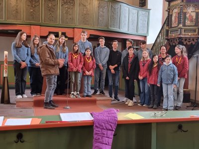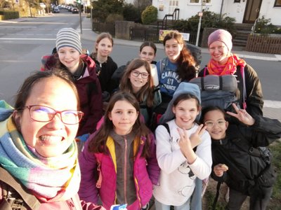 Am Samstag trafen wir, die Honigdachse der Heliand Pfadfinderinnenschaft, uns nachmittags in Friedrichsdorf beim Kletterwald. Dort kletterten wir verschiedene Bahnen, die teilweise knifflig waren, und hatten dabei richtig Spaß. Bis zum Abend blieben wir im Kletterwald bevor wir uns auf den Weg zur Gemeinde machten. Dort backten wir eine selbstgemachte Pizza zum Abendessen und sangen noch ein Lied vor dem Essen. Nachdem alles abgeräumt und sauber war, gingen wir mit unseren Kerzen im Glas los, um Wichtel zu ernennen. Als wir wieder zurück waren, spielten wir eine Runde Werwolf und übten unsere Vorträge für den Gottesdienst. Anschließend putzten wir uns die Zähne und legten uns in die gemütlich eingerichteten Schlafsäcke, die wir vor dem Essen ausgeräumt und vorbereitet hatten. Am nächsten Morgen packten wir schnell ein und frühstückten Brötchen mit leckeren Aufstrichen. Als wir fertig gefrühstückt hatten, putzten wir uns nochmal die Zähne und kurz darauf machten wir uns auf den Weg zur evangelischen Kirche ganz in der Nähe, für den Gottesdienst. Nach dem Gottesdienst kehrten wir zurück zur Gemeinde und holten unsere Sachen ab. Zum Schluss stellten wir uns in einen Kreis und sangen zum Abschied „Allzeit bereit“.