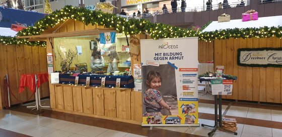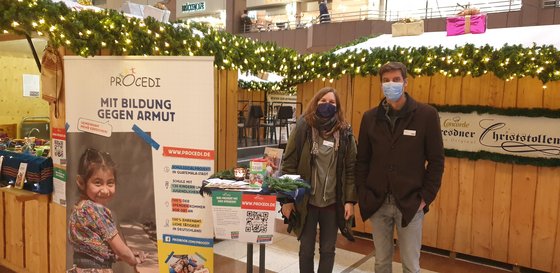 Zum ersten Mal gab es am vergangenen Samstag im Nordwestzentrum Frankfurt einen Weihnachtsmarktstand von Procedi. Verkauft wurden verschiedene Sachen aus Guatemala, Plätzchen, Kerzen und Seife, die die Konfis aus Frankfurt Nordwest und dem Riedberg gemacht hatten und von einer Konditorei gespendete Plätzchen. Insgesamt wurden über 320 € eingenommen, schön war es aber auch, Procedi in der Öffentlichkeit zu zeigen. Besetzt wurde der Stand vom Vorstand von Procedi, Menschen aus dem EJW und den Konfis aus den Gemeinden Frankfurt Nordwest und dem Riedberg. Piet Henningsen
