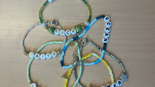 Alle Spender*innen aus diesem Monat dürfen sich freuen, denn sie kommen in unseren Lostopf und haben die Chance, eines von diesen fünf selbstgebastelten Perlenarmbänder zu gewinnen!