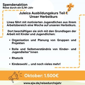 Viele Jugendliche haben sich entschieden, dieses Jahr ihre Jugendleitercard-Ausbildung bei uns im EJW zu machen. Auf dem Herbstkurs in unserem Freizeitzentrum Haus Heliand im Taunus haben sie sich mit vielen Fragen und Themen der evangelischen Jugendarbeit beschäftigt und zahlreiche Gelegenheiten gehabt, Dinge zu üben und auszuprobieren: Ablauf von Gruppenstunden, Rhetorik, Kindeswohl, einen Godi-Workshop und noch vieles mehr.